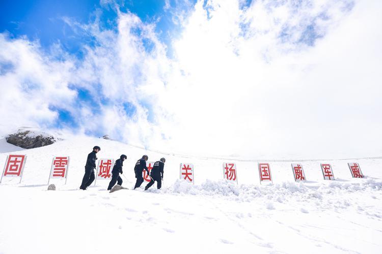 圖為西藏亞?wèn)|出入境邊防檢查站民警在海拔4300余米的乃堆拉山口巡邏