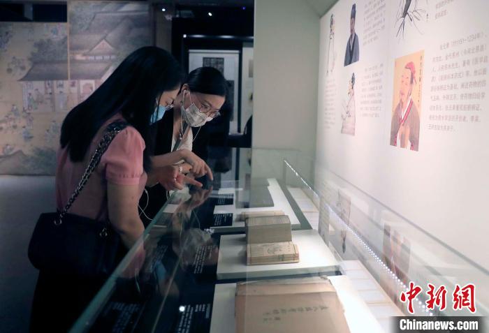 觀眾在觀看展出的中國傳統(tǒng)醫(yī)學(xué)文獻(xiàn)?!⊥趵?攝