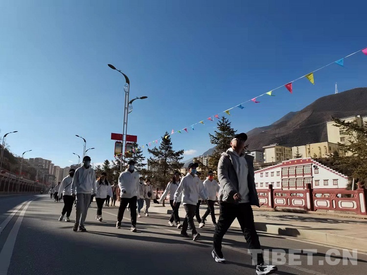 在“全民健康你我共行,活力昌都你我有約”徒步活動現(xiàn)場,號令槍響,近400名徒步運動員,頭戴黑色防曬帽,身著白色運動衣,沖出了起點線,大家個個精神飽滿、熱情洋溢、健步如飛。整個徒步路線長達5.5公里,在公安干警的細(xì)心陪護下,第一批到達終點的學(xué)員僅用了半個小時 。市科技局閆錦源說:“在藏歷新年期間,能參加一個健身活動,我覺得特別有意義,我也會把全民健康理念,傳遞給我身邊更多的朋友!”