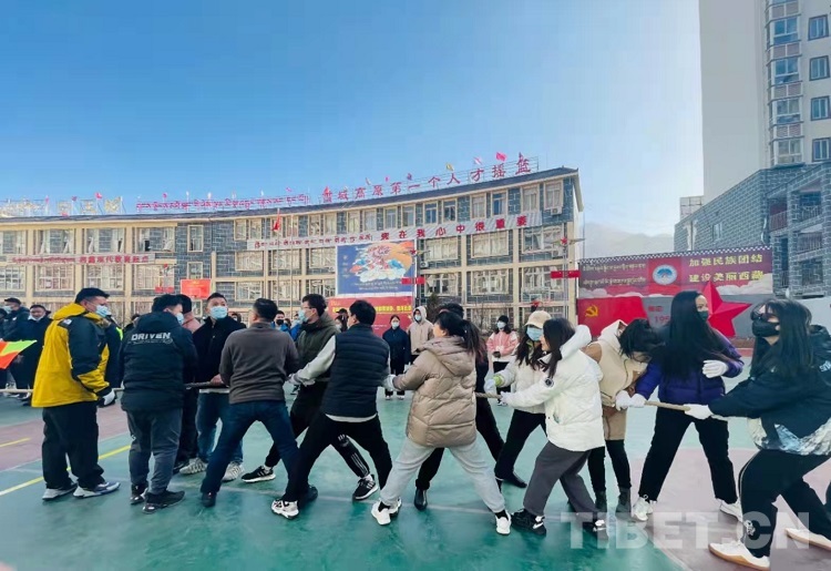 圖為昌都市實驗小學(xué)參與拔河比賽熱情高漲