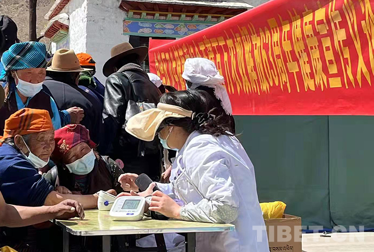 中國(guó)西藏網(wǎng)訊 “你擼起袖子,要測(cè)下血壓?!薄耙浀冒磿r(shí)吃藥?!比涨?,西藏自治區(qū)4家自治區(qū)級(jí)醫(yī)院的專家來(lái)到拉薩市林周縣強(qiáng)嘎鄉(xiāng),為當(dāng)?shù)厝罕娏x診并開展健康知識(shí)宣講。