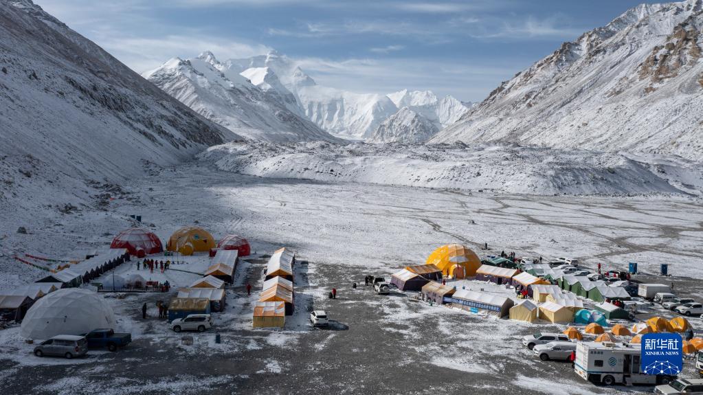 這是珠峰登山大本營(5月1日攝,無人機照片)。新華社記者 孫非 攝