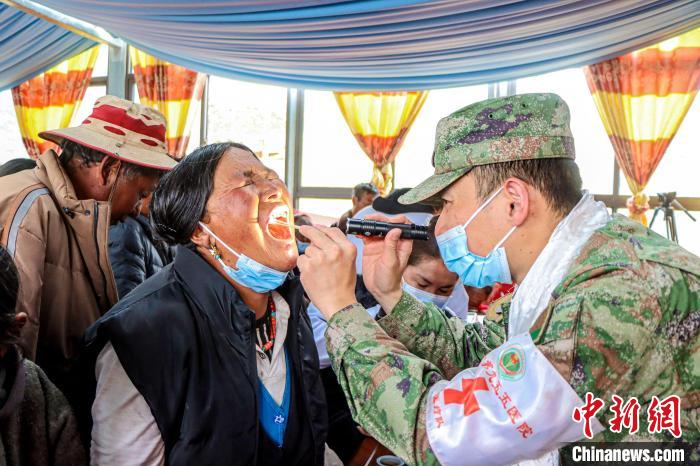 圖為醫(yī)療隊(duì)軍醫(yī)為村民進(jìn)行口腔檢查。 朱文秀 攝
