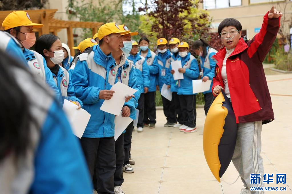在西藏自治區(qū)那曲市色尼區(qū)第二中學(xué)(杭嘉中學(xué)),志愿者陳春玉正在引導(dǎo)學(xué)生排隊驗光(6月22日攝)。新華社發(fā)(趙穎碩 攝)