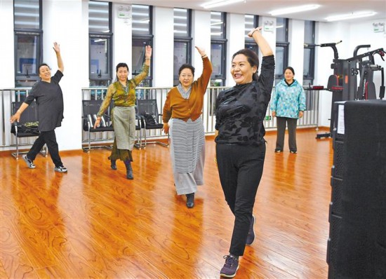 圖為老年人在拉薩市城關(guān)區(qū)老年人日間照料中心學習舞蹈。記者 旦增蘭澤 攝