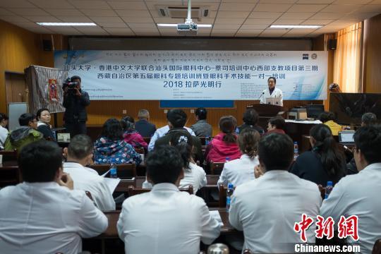 圖為由汕頭大學(xué)香港中文大學(xué)聯(lián)合汕頭國(guó)際眼科中心舉辦的西藏自治區(qū)第五屆眼科專(zhuān)題培訓(xùn)班暨2018“拉薩光明行”項(xiàng)目在西藏自治區(qū)藏醫(yī)院?jiǎn)?dòng)。 何蓬磊 攝