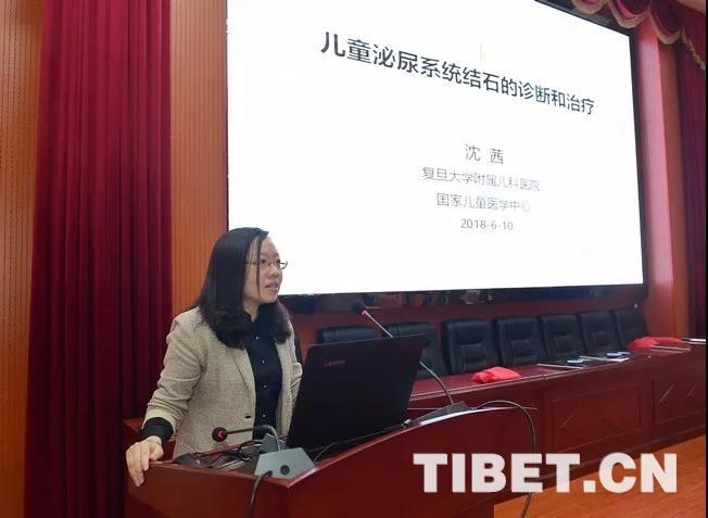 圖為復(fù)旦大學(xué)附屬兒科醫(yī)院沈茜教授結(jié)合自己多年的臨床診治經(jīng)驗(yàn)和學(xué)術(shù)研究成果做了簡(jiǎn)短而精彩的學(xué)術(shù)講座。日喀則市人民醫(yī)院供圖