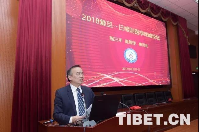 圖為復(fù)旦大學(xué)黨委副書(shū)記袁正宏出席復(fù)旦-日喀則醫(yī)學(xué)高峰論壇并致辭。日喀則市人民醫(yī)院供圖