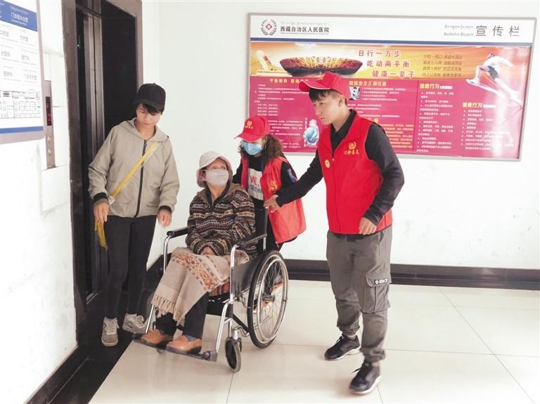 圖為在西藏自治區(qū)人民醫(yī)院,南京醫(yī)科大學的志愿者在服務(wù)患者。記者 央金 攝