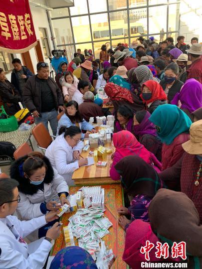 圖為西藏阜康醫(yī)院派出醫(yī)療團隊到嘉黎縣夏瑪鄉(xiāng)衛(wèi)生院為當?shù)剞r(nóng)牧民義診。阜康醫(yī)院供圖