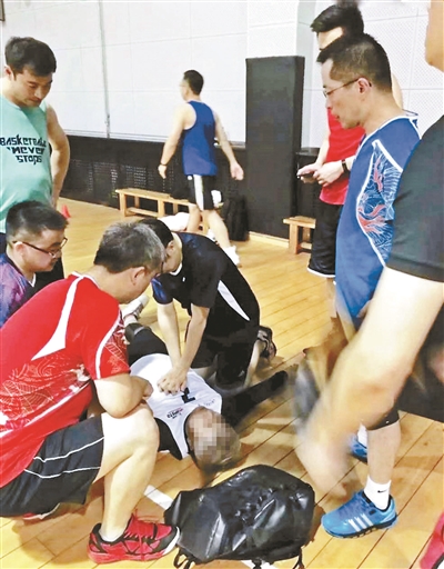 3月25日晚上8點(diǎn)多,協(xié)和醫(yī)院內(nèi)科ICU醫(yī)生江偉和幾位同事正在東單體育館的羽毛球館里打球,突然,一名場(chǎng)館工作人員跑進(jìn)來,大喊:“旁邊有人暈倒了,叫不醒”!聽到呼救后,6名醫(yī)生扔下球拍就往隔壁的籃球館跑。倒地的患者是一位50歲左右的中年男子,叫不醒、頸動(dòng)脈摸不到、呼吸微弱……這些指征都表明,患者發(fā)生了猝死。