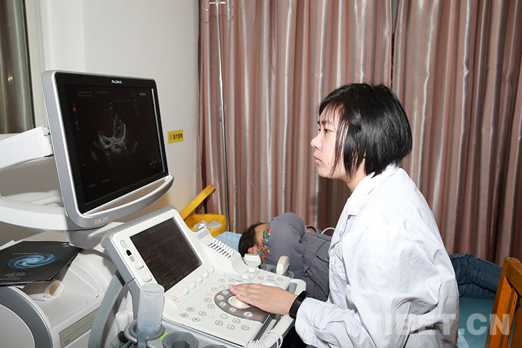 圖為李蕾為患兒做心臟超聲檢查 攝影:陳衛(wèi)國
