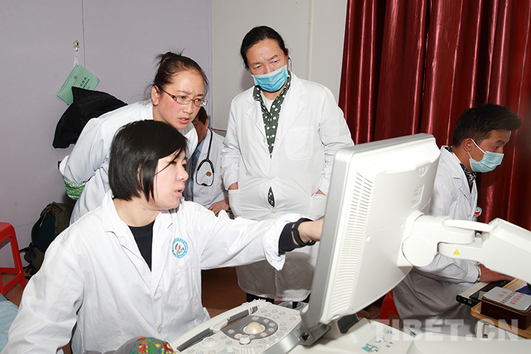 圖為李蕾在超聲檢查過程中向當(dāng)?shù)蒯t(yī)護(hù)人員講解相關(guān)知識 攝影:陳衛(wèi)國