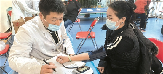 “來吸氣呼氣。好,再來吸氣呼氣……”眼前,正在體檢內(nèi)科進行聽診和測量血壓的是市殘疾人日間照料樣板模式服務點托養(yǎng)對象邊珍。體檢中心內(nèi)科醫(yī)生盧濤一邊為邊珍體檢,一邊耐心地詢問她近期身體有沒有不適。就邊珍提出的鼻炎的問題,盧醫(yī)生提醒她冬季一定要注意保暖,平時外出要戴好口罩,不要接觸刺激性的煙霧、粉塵、油煙等。邊珍告訴記者,在她15歲時由于高燒導致下肢殘疾,來到該服務點前,生活無法自理,如今,經(jīng)過近兩年的牽引、按摩、站立、行走等康復訓練后,身體素質(zhì)顯著改善,而這也是她在服務點進行的第三次免費體檢?!皩ξ覀儊碚f,平時如果想去醫(yī)院體檢很不方便,這次體檢中心醫(yī)護人員專程到服務點來為我們體檢,項目也非常齊全,讓我感受到了黨和政府對殘障人士的關心、關愛?!边呎湔f。