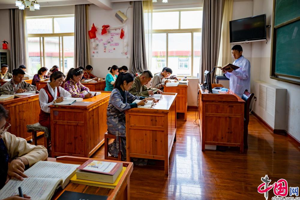 西藏藏醫(yī)藥大學(xué)建校之初,僅有1個藏醫(yī)學(xué)專業(yè)。隨后2001年設(shè)置藏藥專業(yè),2018年設(shè)置護(hù)理學(xué)和市場營銷學(xué)專業(yè),2020年設(shè)置中(藏)西臨床醫(yī)學(xué)、中(藏)藥制藥專業(yè)。2019年藏醫(yī)學(xué)、藏藥學(xué)專業(yè)入選省級一流本科專業(yè)。2021年藏醫(yī)學(xué)入選國家級一流本科專業(yè)建設(shè)點。至此,學(xué)校形成了以藏醫(yī)學(xué)國家級一流本科專業(yè)建設(shè)點為引領(lǐng),以藏醫(yī)學(xué)、藏藥學(xué)2個省級一流專業(yè)建設(shè)點為支撐,以藏醫(yī)學(xué)、藏藥學(xué)、護(hù)理學(xué)、市場營銷、中(藏)西臨床醫(yī)學(xué)、中(藏)藥制藥6個本科專業(yè)為基礎(chǔ)的發(fā)展新格局。圖為西藏藏醫(yī)藥大學(xué)學(xué)生正在上課。中國網(wǎng)記者 鄭亮攝