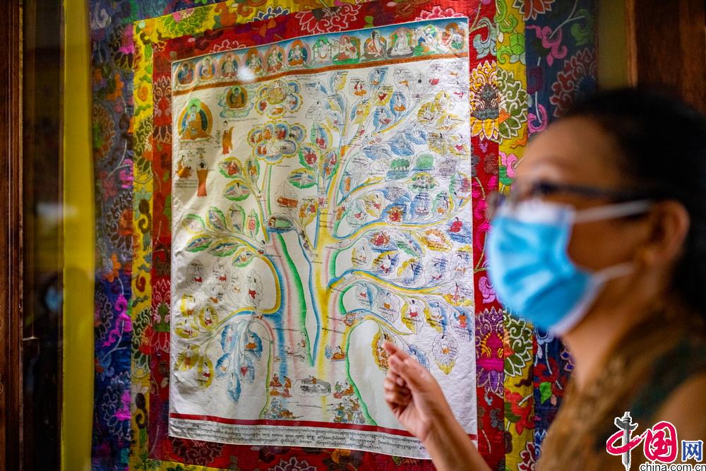 西藏藏醫(yī)藥大學(xué)開設(shè)特色鮮明的藏醫(yī)藥學(xué)唐卡教學(xué)課程?,F(xiàn)有醫(yī)學(xué)唐卡由十七世紀(jì)藏醫(yī)藥大家第司.桑杰嘉措創(chuàng)建,距今已有300多年的歷史。醫(yī)學(xué)唐卡用歸納、總結(jié)的方式將藏醫(yī)藥典籍《四部醫(yī)典》的主要內(nèi)容以“樹喻”方式繪示出來。成書于1300多年的《四部醫(yī)典》是藏醫(yī)藥學(xué)理論的根本大典。包括總則醫(yī)典、論述醫(yī)典、秘訣醫(yī)典和后續(xù)醫(yī)典。內(nèi)容涵蓋藏醫(yī)生理學(xué)、病理學(xué)、診斷學(xué)、治療學(xué)等基礎(chǔ)理論,細(xì)化了婦科、兒科、內(nèi)科、外傷等學(xué)科,包含了解剖學(xué)、護(hù)理學(xué)、藥學(xué)等眾多學(xué)科。圖為學(xué)校老師在對醫(yī)學(xué)唐卡進(jìn)行講解。中國網(wǎng)記者 鄭亮攝