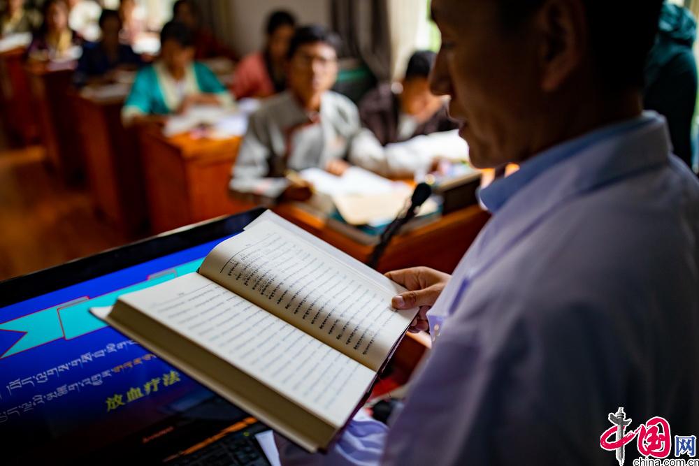藏醫(yī)藥學(xué)是中華民族醫(yī)學(xué)寶庫中的一顆璀璨明珠,具有理論體系完備、診療方法獨特、臨床經(jīng)驗豐富等特征。在3800多年的傳承歷史中,主要依托家族傳授、師徒傳承、寺廟教育延續(xù)和發(fā)展。公元8世紀(jì),第一所藏醫(yī)藥專業(yè)學(xué)校在西藏米林縣建立,開啟了藏醫(yī)藥教育的歷史先河。新中國成立以來,藏醫(yī)藥現(xiàn)代教育開始起步并快速發(fā)展。上世紀(jì)七十年代在拉薩衛(wèi)生學(xué)校開設(shè)了藏醫(yī)專業(yè)中專班; 1983年建立西藏自治區(qū)藏醫(yī)學(xué)校; 1985年西藏大學(xué)成立的同時開設(shè)藏醫(yī)系,招收了藏醫(yī)專業(yè)首批本科生; 1989年,在原西藏大學(xué)藏醫(yī)系和西藏自治區(qū)藏醫(yī)學(xué)校的基礎(chǔ)上,西藏藏醫(yī)學(xué)院正式掛牌成立,標(biāo)志著藏醫(yī)藥高等教育現(xiàn)代發(fā)展的新起點。圖為藏醫(yī)學(xué)祖師玉妥·寧瑪云丹貢布雕像。中國網(wǎng)記者 鄭亮攝
