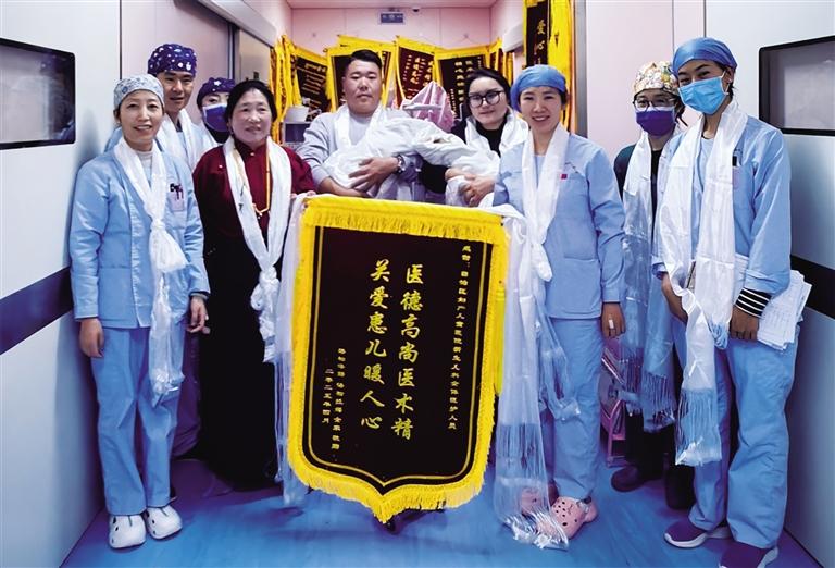出院當(dāng)天,自治區(qū)婦產(chǎn)兒童醫(yī)院主要領(lǐng)導(dǎo)及新生兒科醫(yī)護(hù)人員為小八和小九送上了吉祥的哈達(dá),并給予了最誠(chéng)摯的祝福,同時(shí),囑咐家長(zhǎng)定期做好兒保工作。年輕的爸爸媽媽激動(dòng)不已,多次含淚表達(dá)謝意并送上錦旗。他們表示,從孕檢到生產(chǎn),再到寶寶的救治過(guò)程,醫(yī)院的醫(yī)護(hù)人員都給予了無(wú)微不至的關(guān)懷與幫助。這不僅是對(duì)新生兒科醫(yī)護(hù)人員辛勤付出的高度肯定,更是高原生命奇跡的有力見(jiàn)證。家屬與醫(yī)護(hù)的“雙向奔赴”,相互信任、相互支撐有了最好的結(jié)果。