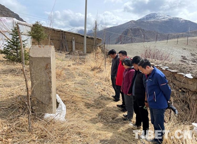 中心昌都采訪組一行在洛隆縣義章寺烈士紀念碑前肅立默哀。這塊紀念碑是1959年中國人民解放軍駐西藏部隊西藏平叛后設立的一座紀念碑。