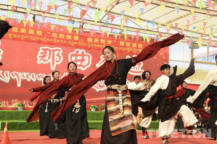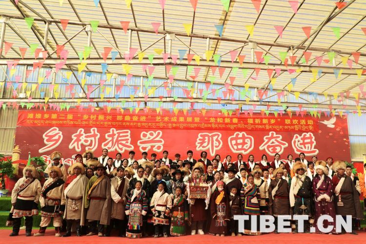 中國西藏網訊 2月10日,中國西藏信息中心“新春走基層”青藏線采訪組一行,來到西藏自治區(qū)那曲市安多縣灘堆鄉(xiāng),適逢當地在舉辦灘堆鄉(xiāng)第二屆“鄉(xiāng)村振興 那曲奮進”藝術成果展暨“龍和新春、福祈新歲”聯(lián)歡活動。采訪組一行來到鄉(xiāng)政府對面的灘堆鄉(xiāng)文化站,記者在現場看到許多穿著具有當地民族特色服飾的人在此聚集。在好奇心的驅使下,經詢問當地干部才知道,為喜迎2024春節(jié)和藏歷新年,感激黨和國家的關心關懷,歌頌如今來之不易的幸福生活,鄉(xiāng)村文藝隊特此精心準備了文藝節(jié)目,以嶄新的面貌和昂揚的精神展現新時代牧民群眾的精神風貌和幸福生活。