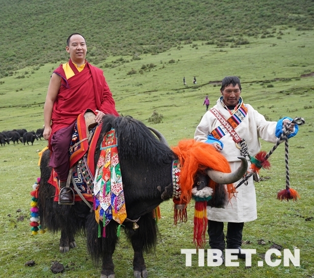 陽光雨露滋潤下,夏季的牧場上到處呈現(xiàn)出翠綠欲滴、生機勃勃的景致,鮮艷的野花與成群的牦牛更是給綠草如茵的牧場鑲嵌上靚麗的花邊。考察完雪林斯布牧場專業(yè)合作社后,十一世班禪一行來到放牧點,考察調研夏季牧場放牧點等情況。在這里,十一世班禪即興策馬徐行,展現(xiàn)出活力青春、風華正茂的一面。