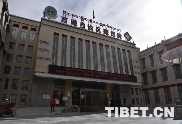 圖為11月29日,西藏自治區(qū)藏醫(yī)院門診樓祝賀“申遺”成功的字幕。