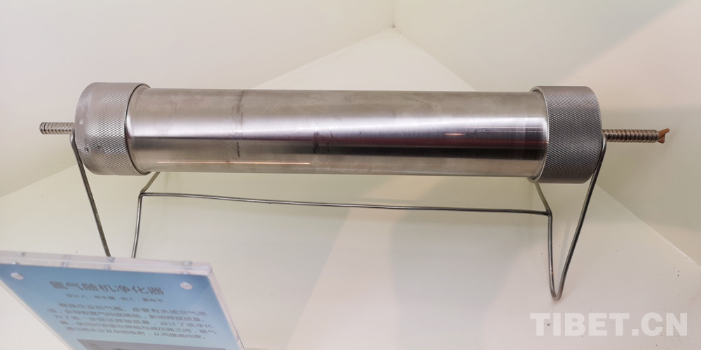 圖為楊永磊設(shè)計(jì)的氬氣隨機(jī)凈化器,使用時安裝在焊槍與減壓器之間,氬氣通過將水分及雜質(zhì)吸附,從而提高氬氣純度,保證焊接質(zhì)量 攝影:李元梅
