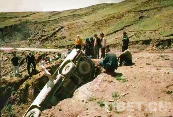 圖為1997年,考古隊(duì)在西藏自治區(qū)阿里地區(qū)措拉山發(fā)生了翻車事故