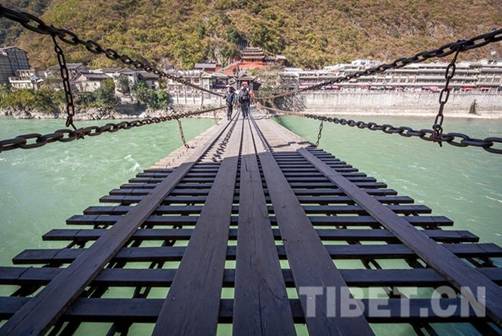 司機指著下游不遠處說:“你看,那才是瀘定橋?!蹦赣H順著司機指的方向,極目眺望,但見不遠處瀘定橋若隱若現(xiàn)在薄霧中,宛如害羞的少女臉龐裹著薄如蟬翼的面紗,在微風吹拂下似露,欲遮,嬌柔可愛!“?。∵@就是舉世聞名的紅軍十八勇士在槍林彈雨中奮不顧身從敵人手里奪下的瀘定橋。”母親情不自禁地喊了出來。后面的汽車在催促著他們前行,司機非常惋惜地說:“要不是有緊急軍務,我一定帶上嫂子過去,上橋親身體驗一下?!币荒臧牒螅鲇趯o定橋的敬仰和好奇,母親返回內(nèi)地時特地上了趟瀘定橋,真真切切感受了一番瀘定橋的壯觀、驚險、蹣跚行走在上面那種驚心動魄;橋下20米左右的河水逐浪翻滾,波浪滔天,好似排山倒海,聲震蒼穹,給人一種大氣磅礴、氣吞山河之感。正如當年毛主席帶領紅軍長征過大渡橋時所感,欣然寫下了豪邁的千古絕唱《七律?長征》:“金沙水泊云崖暖,大渡橋橫鐵索寒……”
