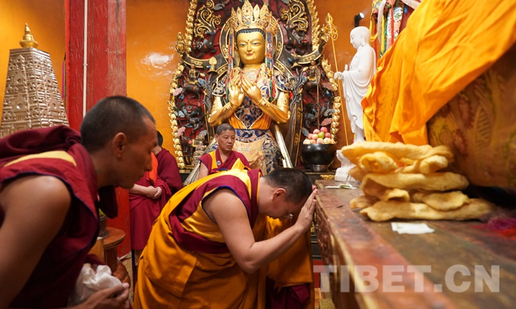 圖為十一世班禪在桑普寺誦經(jīng)祈愿 攝影:王淑