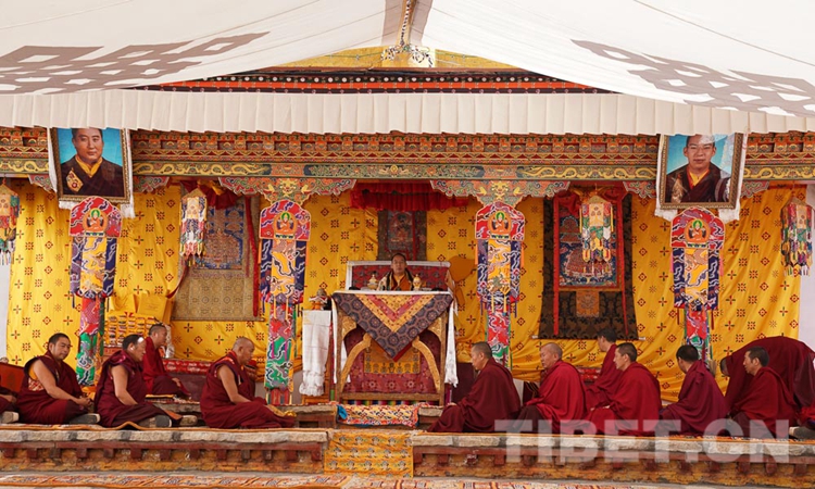 在熱堆寺,十一世班禪禮佛并為正在修建的大殿開光加持。隨后,十一世班禪在寺內辯經(jīng)場為僧眾摸頂,并傳授《菩提道矩論》。