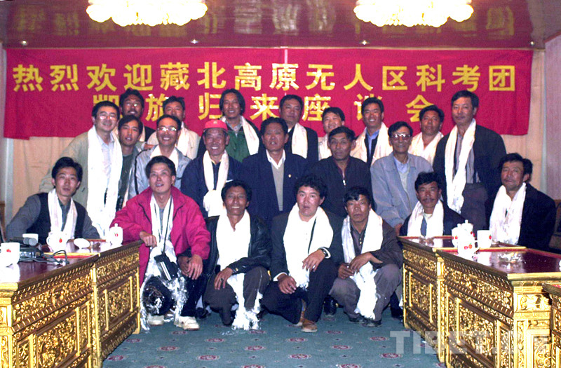 這是藏北高原無人區(qū)科考團人員,在完成2001年科考任務(wù)返回拉薩后合影留念(唐召明提供,2001年攝)