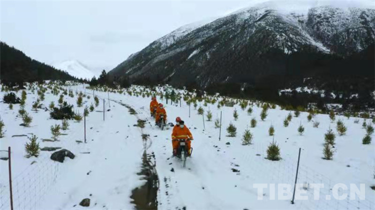 圖為卓瑪朗措國家濕地公園濕地檢測員冒著風雪巡邏