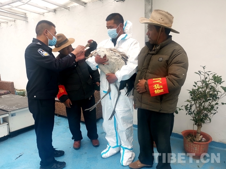 結(jié)合丹頂鶴受傷情況,馬攸橋邊檢站立即聯(lián)系了普蘭縣駐馬攸木疫情防控點(diǎn)醫(yī)務(wù)人員,對(duì)受傷丹頂鶴進(jìn)行初步檢查,并對(duì)傷口進(jìn)行簡(jiǎn)單的處理。同時(shí),馬攸橋邊檢站積極與普蘭縣林業(yè)局取得聯(lián)系,請(qǐng)求派遣專(zhuān)業(yè)人員前往檢查站對(duì)受傷丹頂鶴做進(jìn)一步的救助。目前,受傷丹頂鶴已經(jīng)移交普蘭縣林業(yè)局專(zhuān)業(yè)人員,并將帶回普蘭縣林業(yè)局做進(jìn)一步的救治處理。