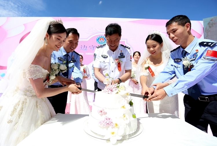 據悉,參加婚禮的移民管理警察,有的工作在高寒缺氧的雪山荒漠;有的駐守在艱苦偏遠的原始森林;有的朝氣蓬勃剛成為戍邊民警;有的則默默耕耘已在邊疆奉獻了近20年。