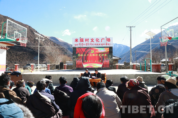 圖為工布江達(dá)縣委書記王啟展在米瑞村宣講黨的二十大精神
