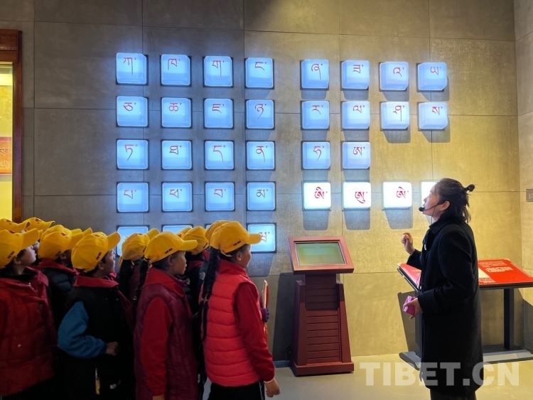 走進“藏地智慧”,學(xué)生們一眼認出藏文創(chuàng)始人吞彌·桑布扎,大家異口同聲回答講解員的問題說:“這是吞彌·桑布扎?!钡玫街v解員的肯定、并向他們講述背后的相關(guān)歷史后,學(xué)生們聽得很入迷,也更有信心面對接下來的問題。藏文的信息化使得這一古老文字煥發(fā)著全新而旺盛的生命力,在這里學(xué)生們欣賞藏文在智能手機、電腦、多功能點讀機等智能電子設(shè)備內(nèi)“走動”、傳統(tǒng)農(nóng)牧業(yè)的模擬場景和現(xiàn)代化的機械設(shè)備圖、藏醫(yī)藥材、藏香藏紙制造和制鹽過程等獨具特色的藏族傳統(tǒng)手工藝,也能很好的回答講解員提出的問題,現(xiàn)場互動氣氛熱烈。“這種活動我們學(xué)校不會常有,當孩子們聽到要去拉薩時像是要過年那樣高興,一路上問這問那地充滿好奇?!倍喟奏l(xiāng)小學(xué)的帶隊老師羅珍介紹:“這次參加活動的這些學(xué)生都是三、四、五年級的學(xué)生,個個品學(xué)兼優(yōu)?!?/p>