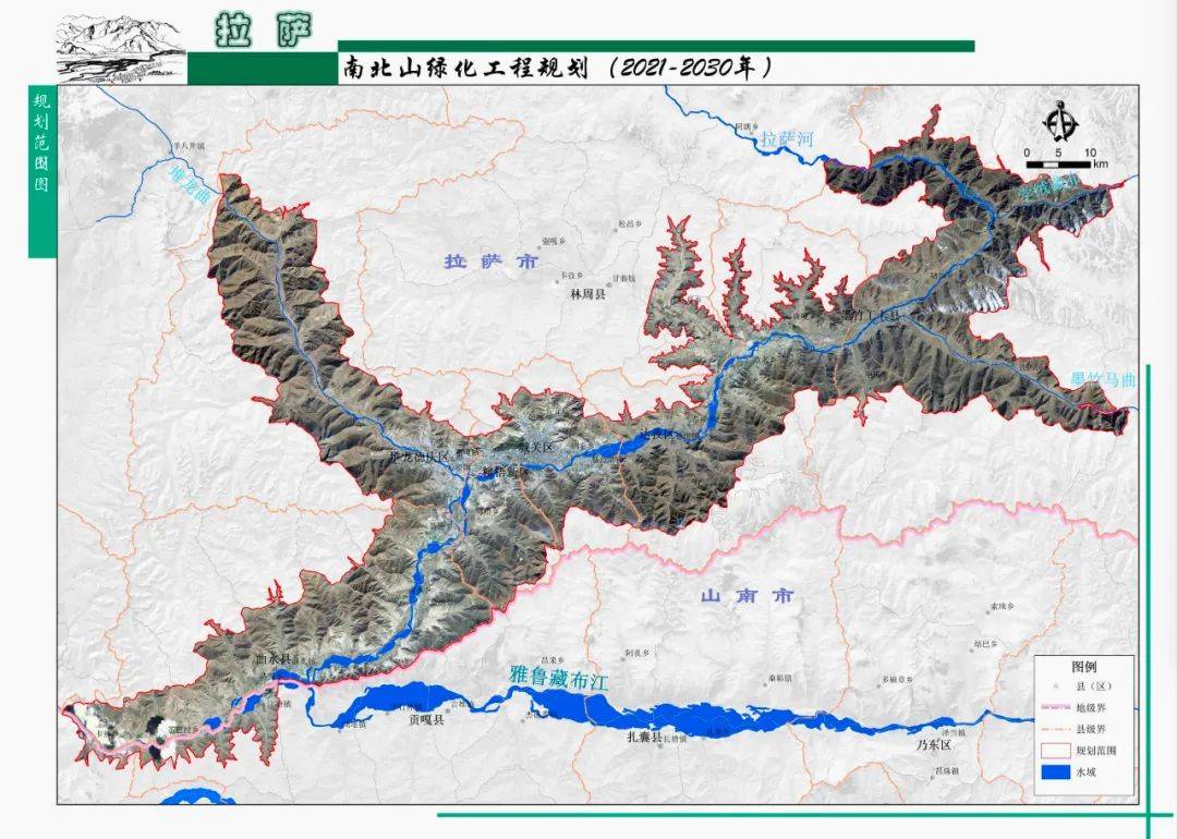該工程以拉薩河為主線,以山體兩側(cè)第一重山脊可視范圍為重點(diǎn),涉及拉薩市城關(guān)區(qū)、柳梧新區(qū)、堆龍德慶區(qū)、達(dá)孜區(qū)、曲水縣、墨竹工卡縣、林周縣和山南市浪卡子縣、貢嘎縣9縣(區(qū))35個(gè)鄉(xiāng)鎮(zhèn)。自2021年至2030年,用10年時(shí)間完成營造林206.7萬畝,新增營造林面積約為現(xiàn)有南山綠化面積的600倍。