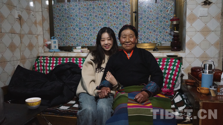 這是我最喜歡的莫啦。住在莫啦家的幾天里,除去采訪、收集素材和寫稿,最放松的時(shí)刻就是忙里偷閑和莫啦在廚房烤火、在巷子口曬太陽。莫啦會(huì)問我穿得這么少冷不冷,會(huì)給我講路過的小女孩有個(gè)雙胞胎姐姐,會(huì)讓我送熱水給我的同事喝,會(huì)拿盛滿卡塞和奶渣的點(diǎn)心盒塞給我吃,會(huì)在我想把手頭工作做完再吃飯時(shí)問同事我怎么不吃飯。當(dāng)然這些我大多是聽不懂的,有些是德瓊阿佳(莫啦的女兒,拉康社區(qū)婦女主任,同時(shí)也是客棧的老板)和達(dá)次哥(這次出差的司機(jī)師傅)翻譯給我的,有些是我倆通過比劃猜到的。