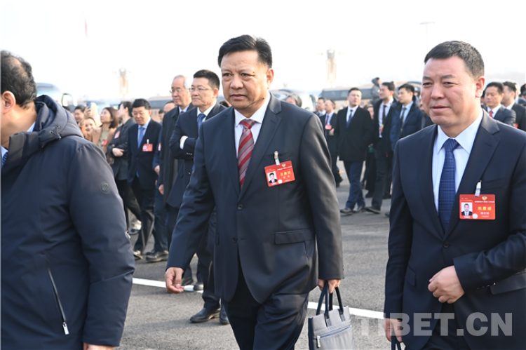 圖為全國政協(xié)委員,青海省委常委、統(tǒng)戰(zhàn)部部長班果前往人民大會堂