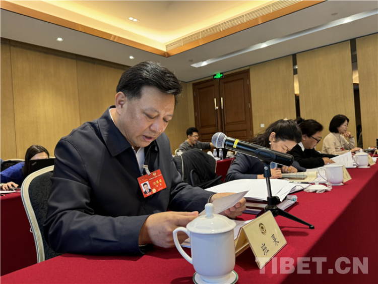圖為全國政協(xié)委員,青海省委常委、統(tǒng)戰(zhàn)部部長班果在全國兩會期間參加小組會議