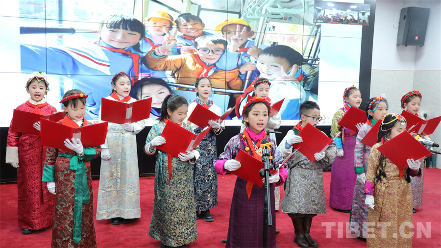 圖為拉薩市實(shí)驗(yàn)小學(xué)和北京市海淀區(qū)中關(guān)村第二小學(xué)共同舉辦的“銘記歷史感黨恩 做新時代好少年”暨“西藏百萬農(nóng)奴解放紀(jì)念日誦讀歌詠活動”