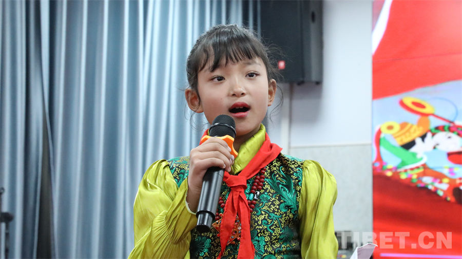 圖為拉薩市實(shí)驗(yàn)小學(xué)賜單央吉同學(xué)誦讀《童心永向黨 童謠頌黨恩》