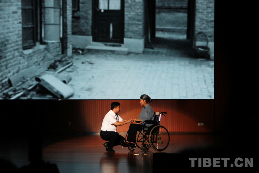 圖為孔繁森同志數(shù)字形象制作啟動(dòng)儀式上,孔繁森精神教學(xué)基地工作人員再現(xiàn)孔繁森同志第二次赴西藏工作前與年邁的母親告別的場(chǎng)景 攝影:劉莉