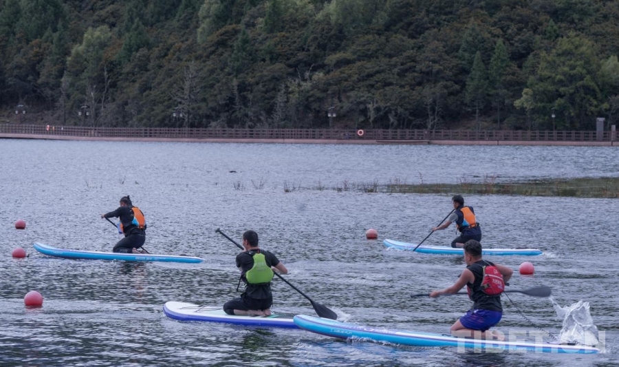 中國西藏網(wǎng)訊 9月26日,2024年“綠水青山”中國休閑運(yùn)動(dòng)挑戰(zhàn)賽(西藏林芝站)在西藏林芝魯朗國際旅游小鎮(zhèn)開賽。來自全國各地的百余名體育健兒及愛好者相聚在扎塘魯錯(cuò)湖畔,共同在藍(lán)天白云下、綠水青山間揮槳競逐。