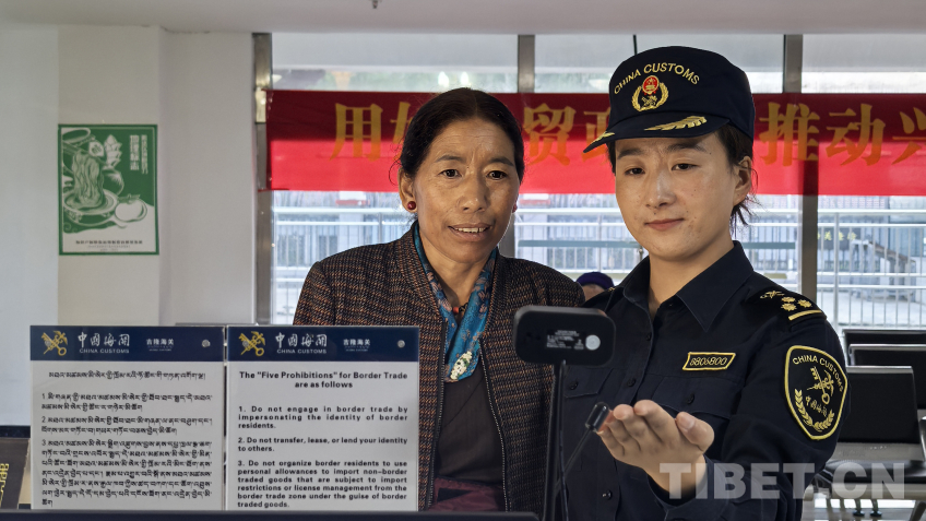 圖為海關(guān)工作人員使用“智能海關(guān)”相關(guān)系統(tǒng)對出入境人員身份信息進(jìn)行核對 圖片由拉薩海關(guān)提供