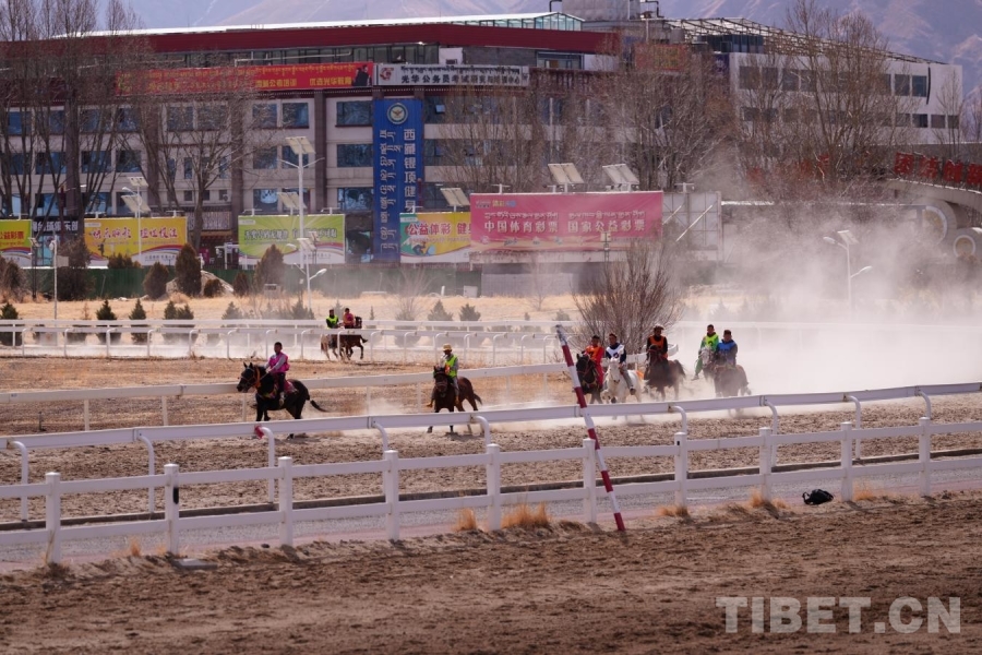 圖為運動員進行民族賽馬5000米比賽 攝影:德吉卓瑪