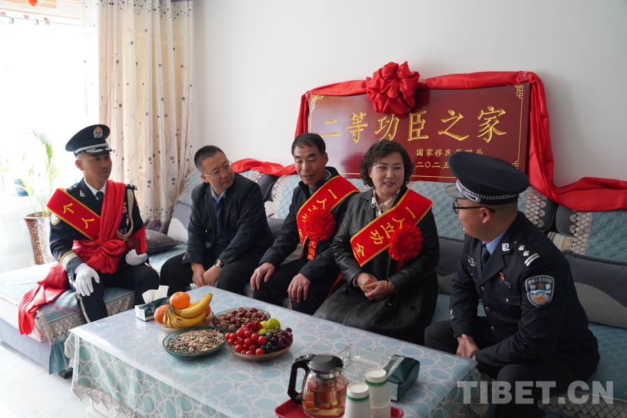 圖為山南邊境管理支隊開展二等功臣“送獎到家”活動現(xiàn)場