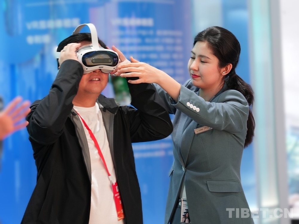 圖為西藏自治區(qū)民營企業(yè)家學(xué)習(xí)參觀團(tuán)成員體驗(yàn)VR 攝影:王茜
