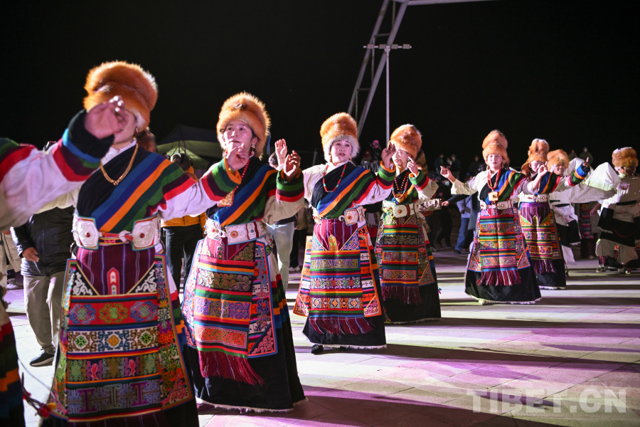中國(guó)西藏網(wǎng)訊 5月18日晚,“情定當(dāng)雄”篝火鍋莊晚會(huì)在西藏拉薩市當(dāng)雄縣賽馬場(chǎng)舉行。晚會(huì)現(xiàn)場(chǎng),以燃燒的篝火為中心,當(dāng)?shù)孛癖娚碇?jié)日盛裝跳起歡快的鍋莊舞。熱情奔放的旋律,洋溢著濃郁的民族風(fēng)情,讓來客們沉浸式體驗(yàn)鍋莊,感受原生態(tài)淳樸的歌舞表演。(中國(guó)西藏網(wǎng) 記者/旦曲)